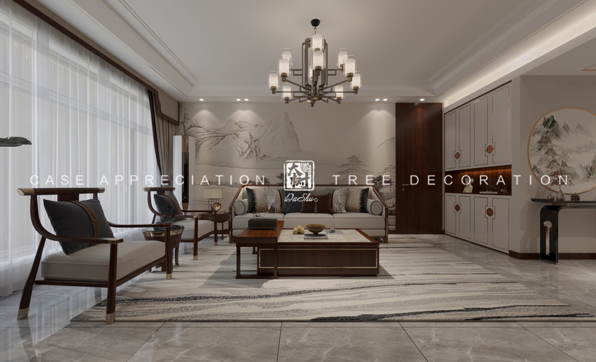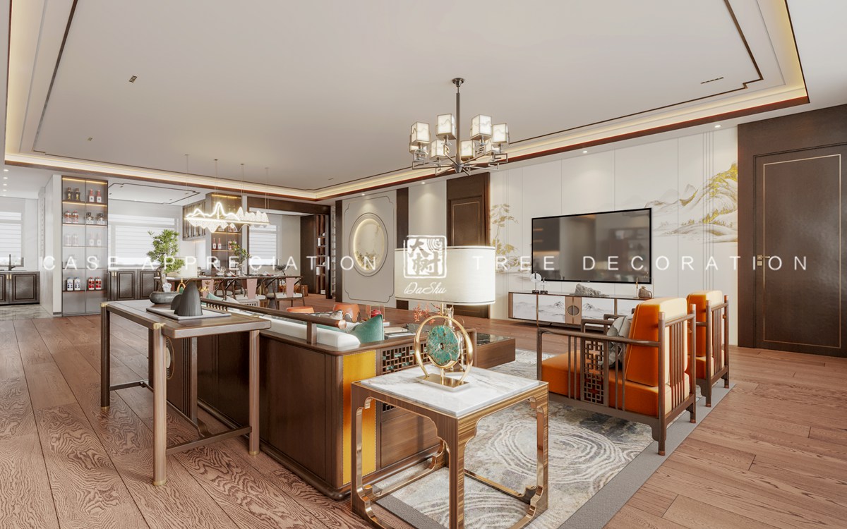 保利水韵长滩360平新中式风格装修实景