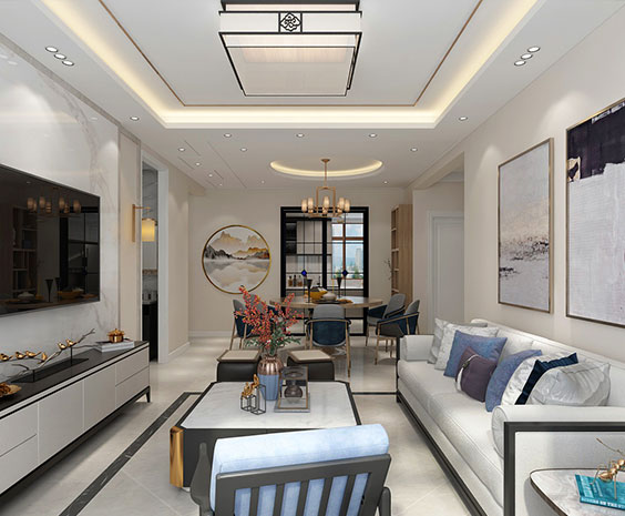 世贸蓝屿100平新中式风格两居室装修效果图