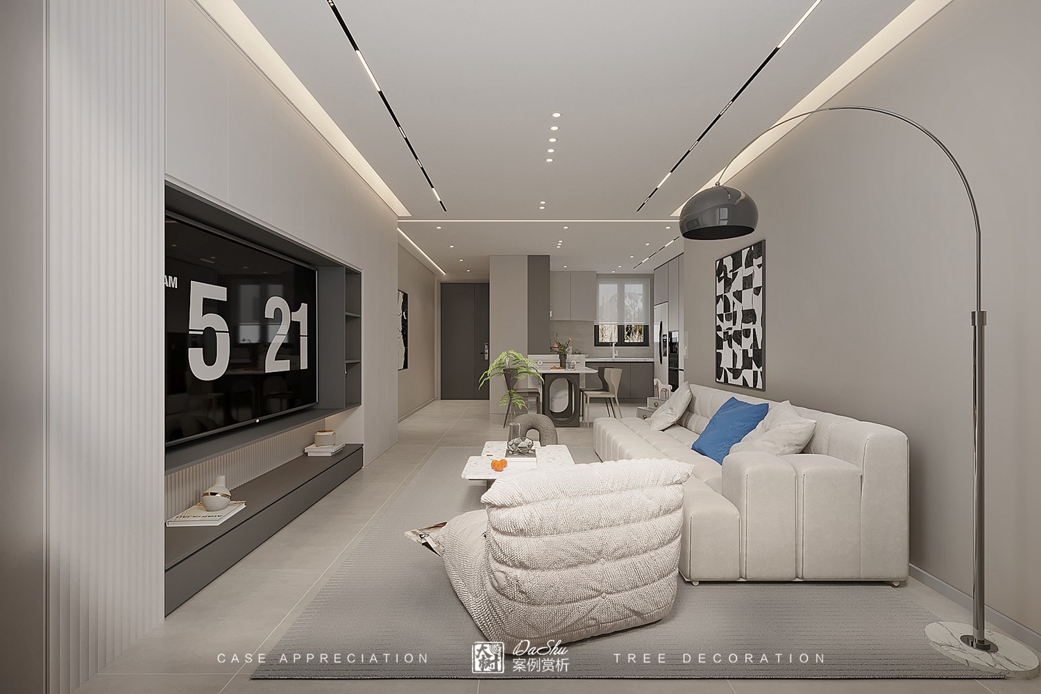 九里芳华83㎡黑白灰风格效果图