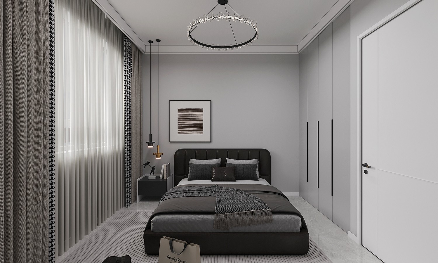 保利明玥时光80㎡黑白灰风格效果图