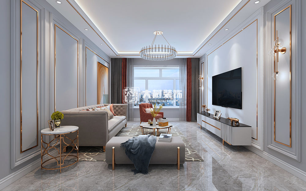 招商贝肯山100平美式轻奢风格三居室装修效果图