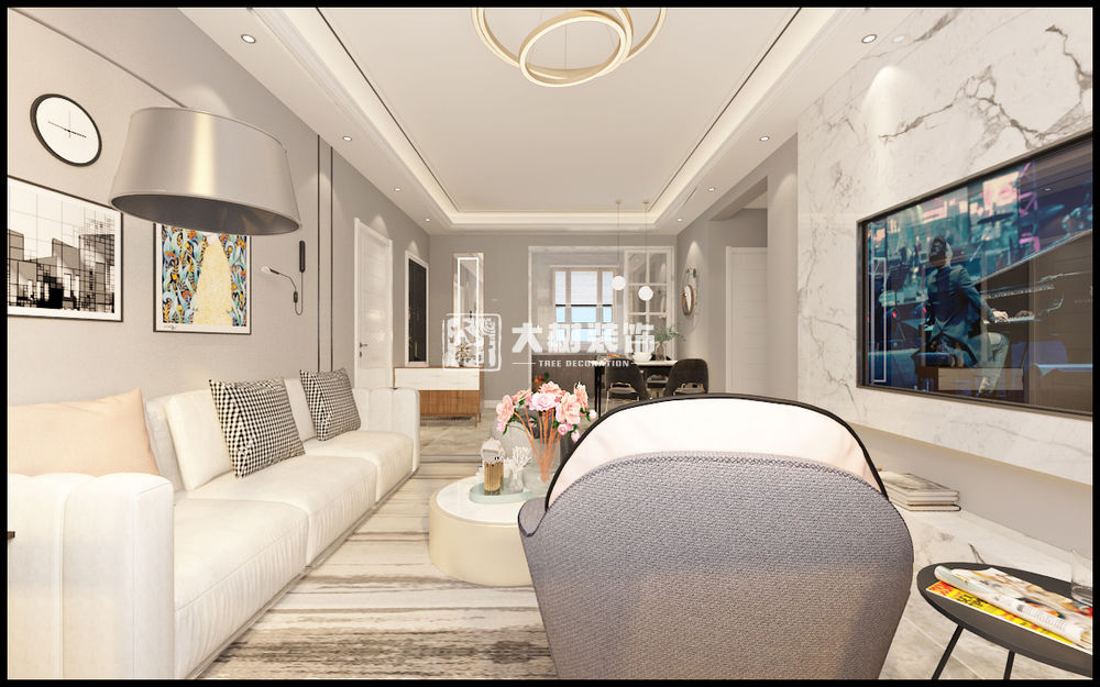 绿地中央广场62平现代风格三居室装修效果图