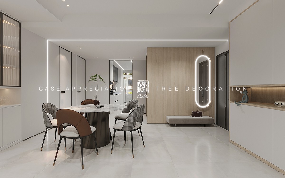 风格上大体采用清浅温柔的色系,耐看又显大。并适当的采用深色系进行点缀,空间与空间的衔接自然流畅不突兀。空间的通透感也拿捏的恰到好处。暖色系的木纹材质装饰,增添了一丝温馨感,让家中有真实的生活感-烟火气息。开放格的设计,完美的解决了收纳空间不足的问题,同时也很丰富了墙面的装饰