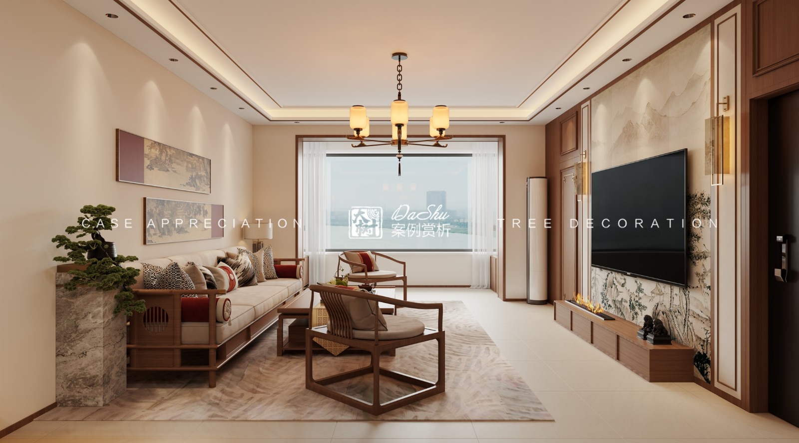 中北春城130㎡新中式风格效果图