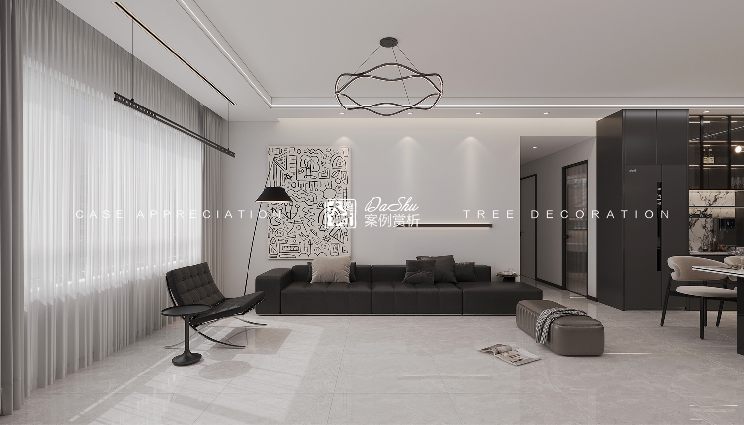 爱达尊御90㎡黑白灰风格效果图