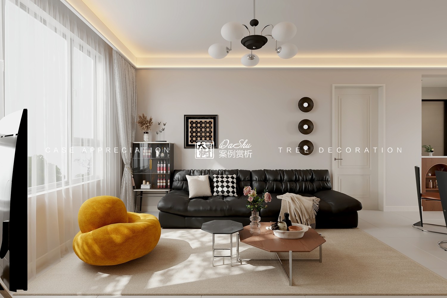 洋海宸月府80㎡现代奶油风效果图